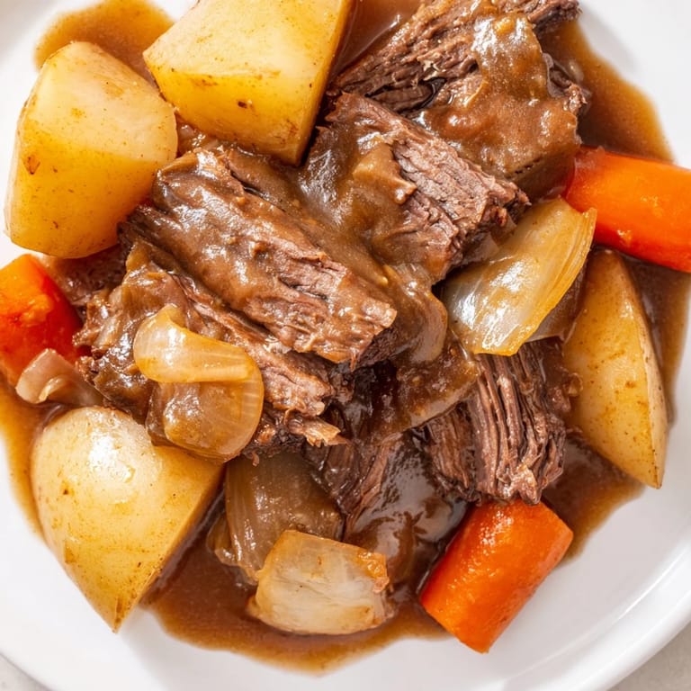 Pot roast actually improves when made a day ahead—the flavors deepen as everything sits in that rich gravy overnight. Reheat gently in a 325°F (160°C) oven covered with foil, or on the stovetop over low heat with a splash of broth to prevent drying. Leftovers make incredible sandwiches on crusty bread, or you can shred the beef and turn it into a completely different meal.