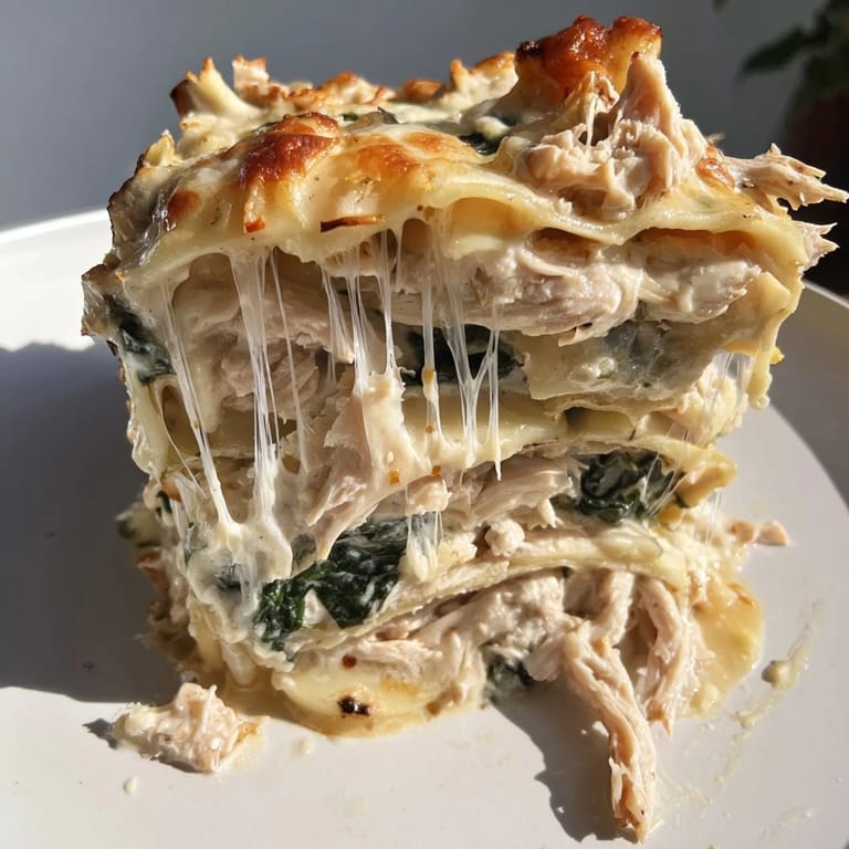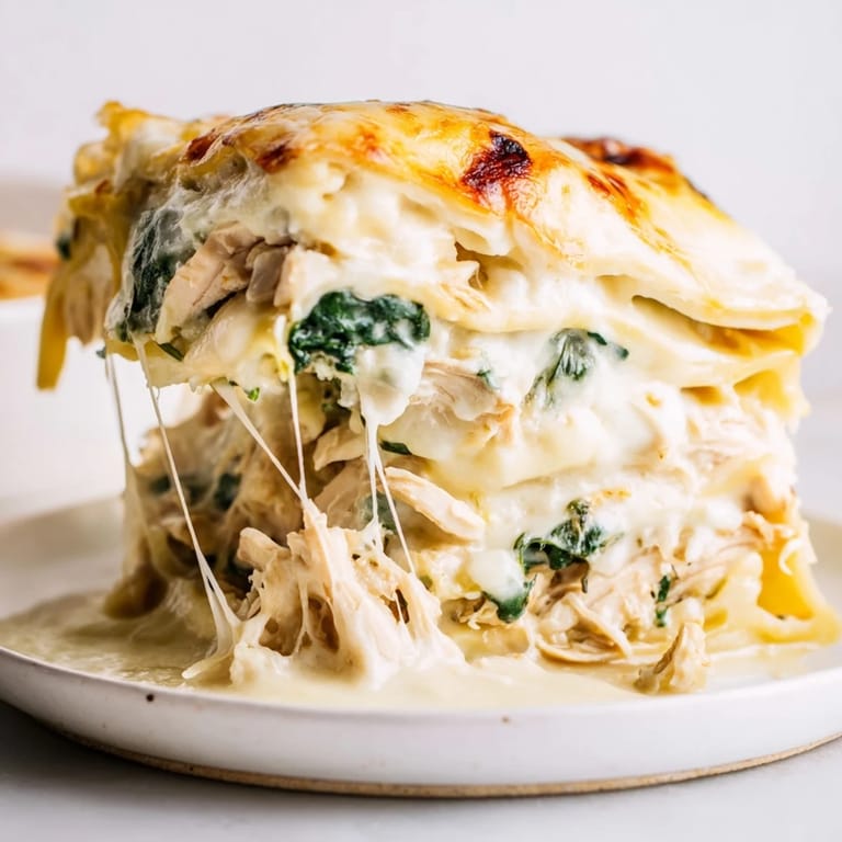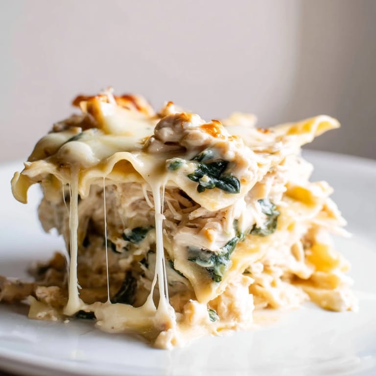 Pin it My husband came home one rainy Tuesday and asked if lasagna could ever be made without red sauce. I blinked at him, then grabbed the ricotta from the fridge. An hour later, we were pulling a bubbling, golden-edged pan of Chicken Alfredo Lasagna from the oven, and he hasn't stopped requesting it since. The kitchen smelled like garlic, cream, and melted cheese, the kind of aroma that makes you forget you ever planned anything else for dinner.