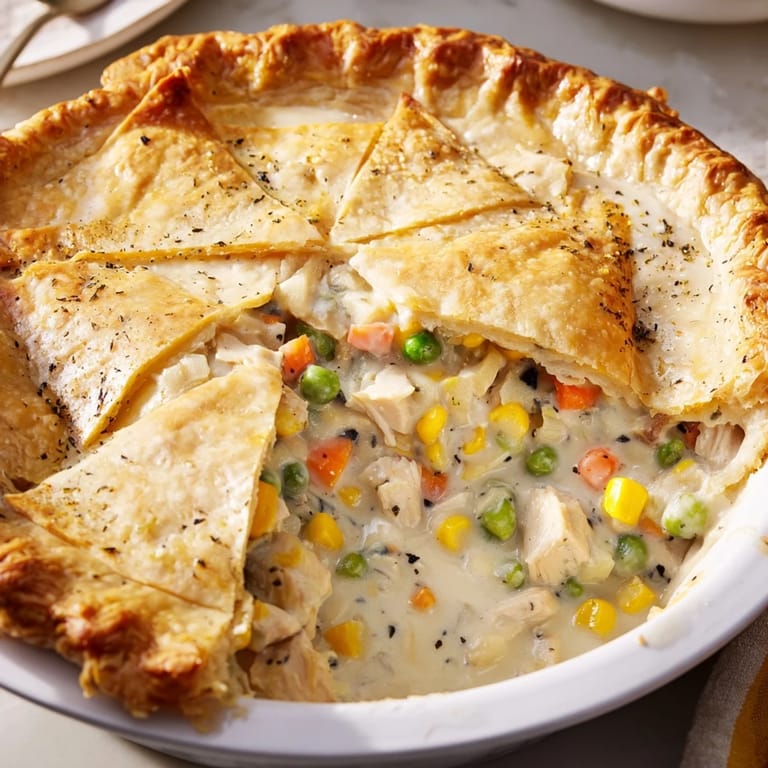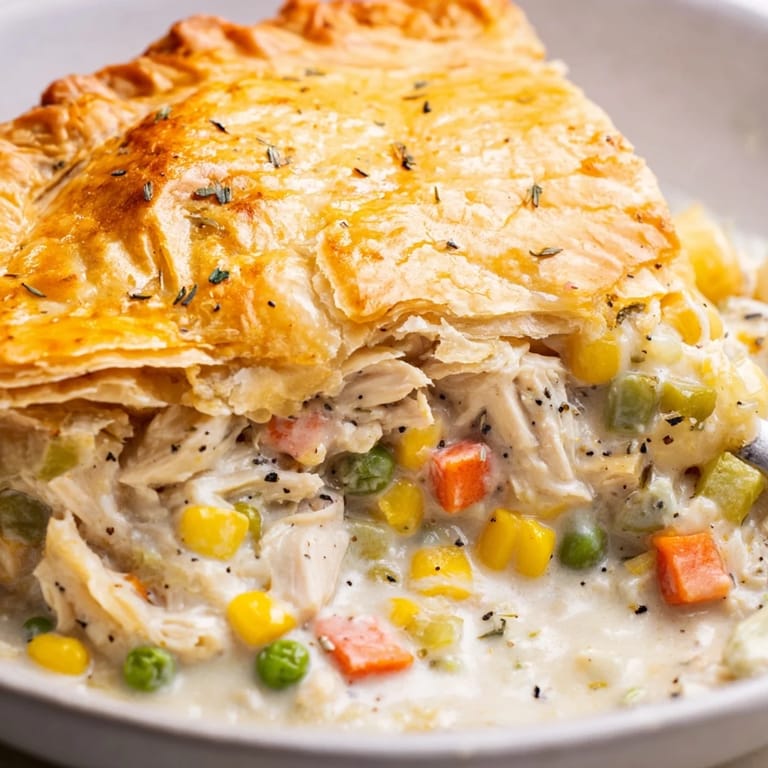 Turkey makes an excellent substitute if you've got it on hand, and the cooking method stays exactly the same. Some people swear by a double crust, wrapping the whole thing top and bottom in pastry for maximum flakiness. You can also swap the vegetables around based on what's in your kitchen: add mushrooms for earthiness, use fresh thyme if you have it, or throw in green beans for color and texture.